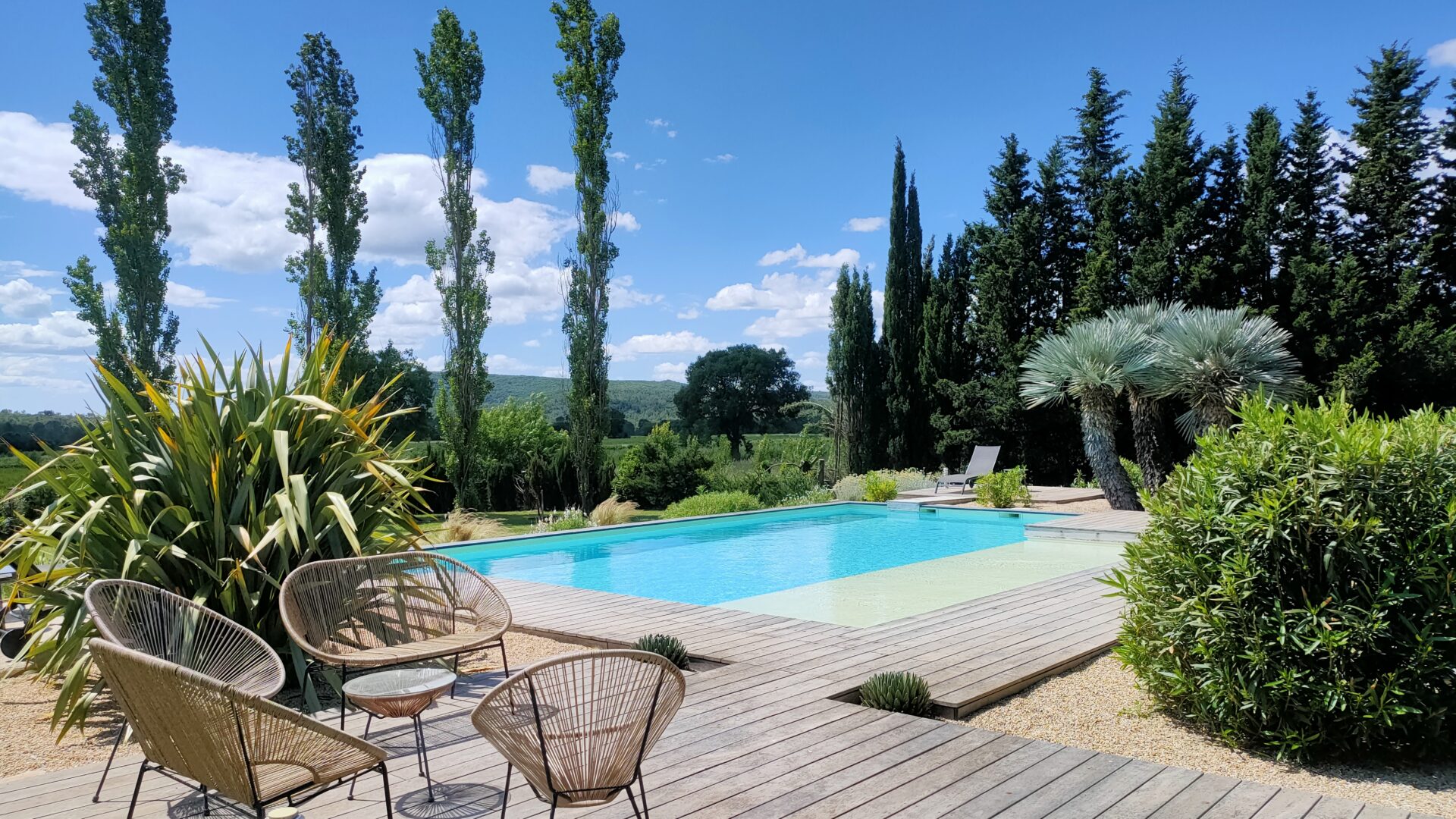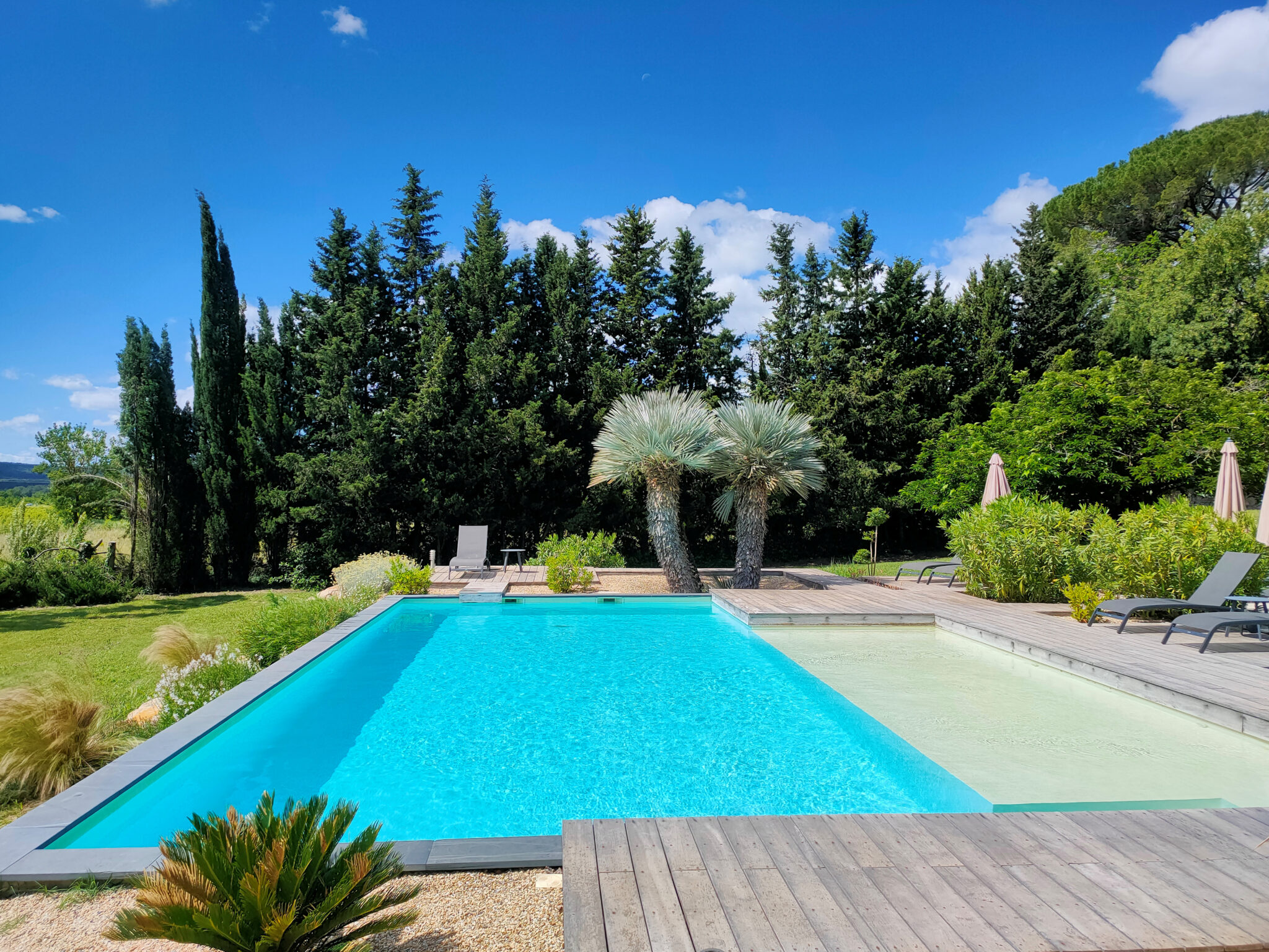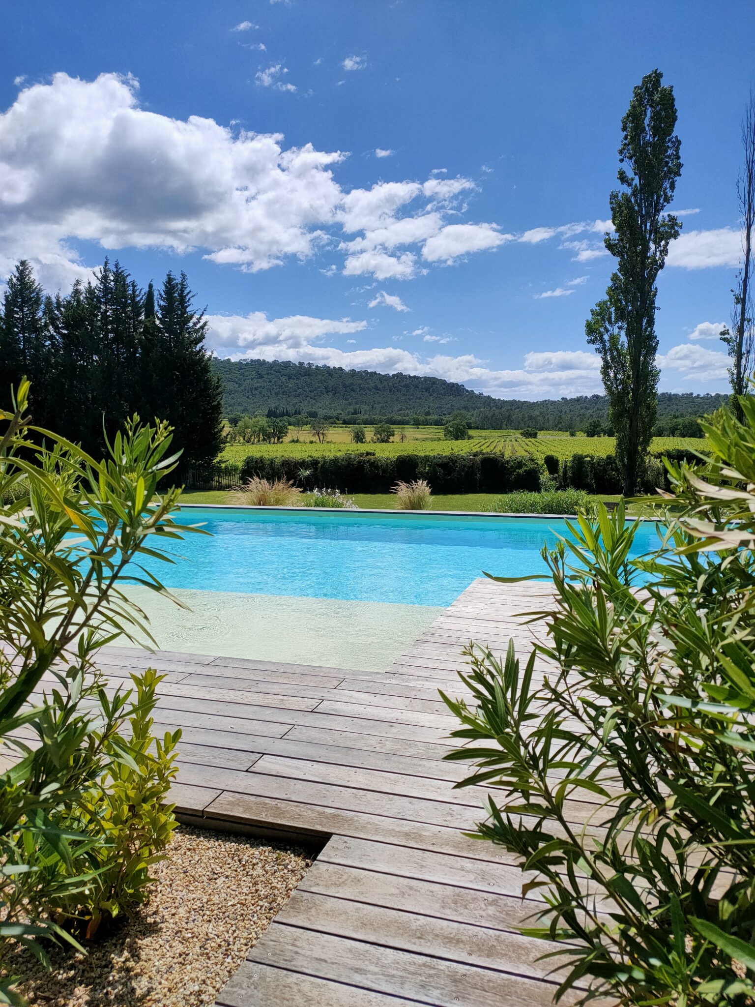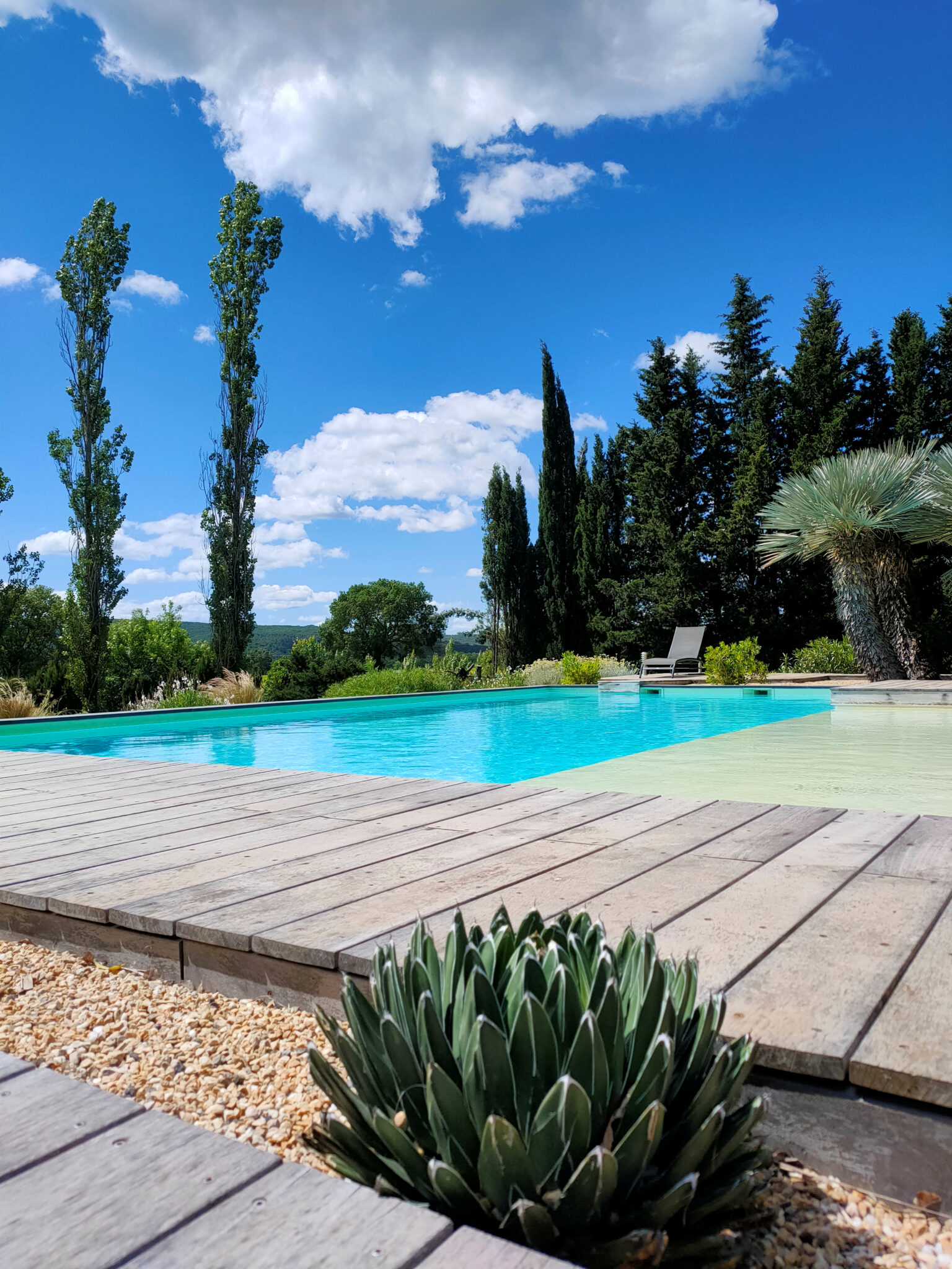 Réalisation d'une piscine haut de gamme avec îlots privés près de Sommières dans le Gard – Domaine de Monteils