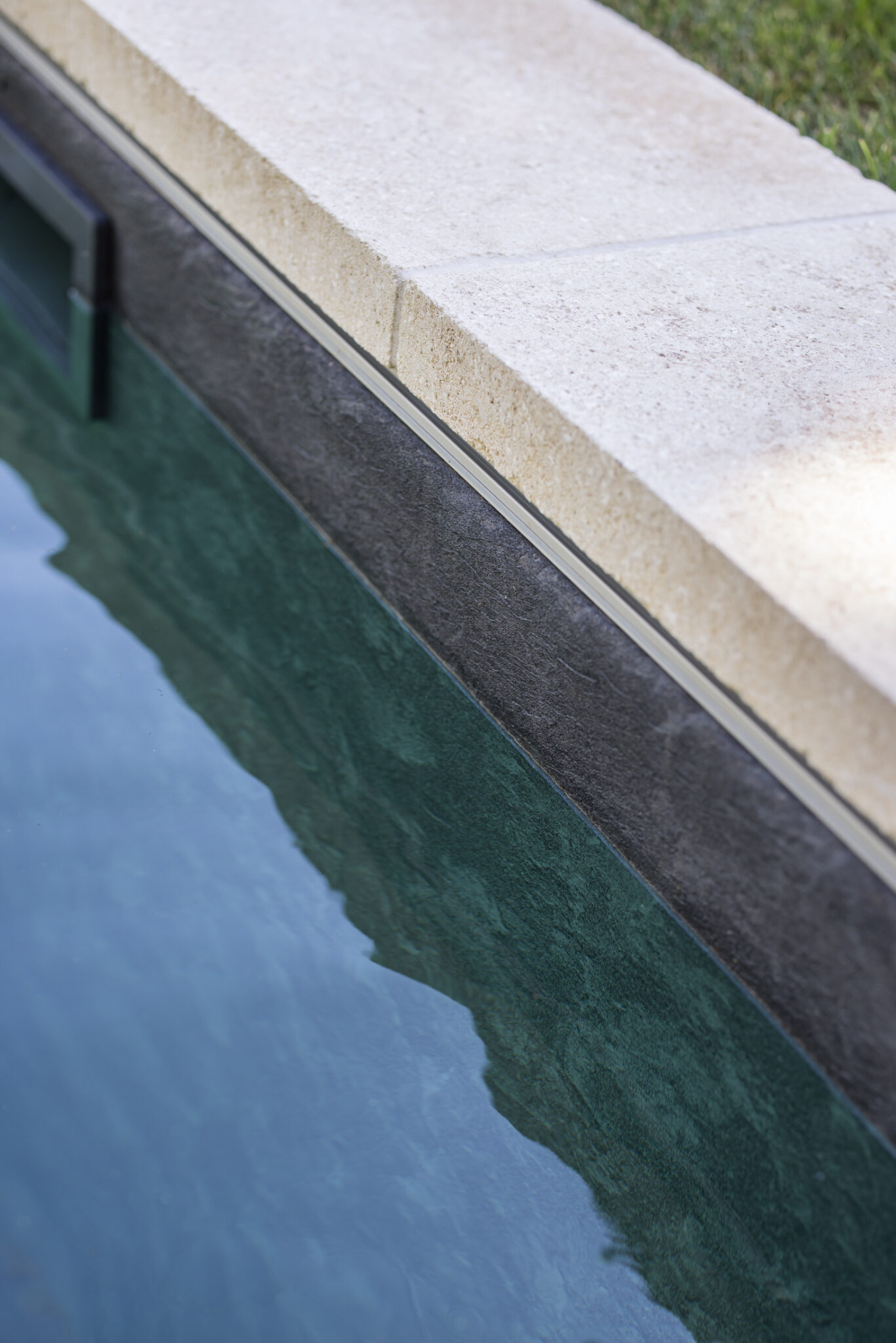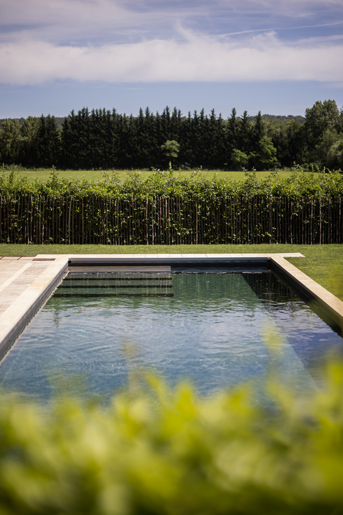 Des champs à perte de vue, des haies naturelles, c’est au milieu de ce camaïeu de verts que se pose sereinement ce bassin aux dimensions extravagantes. Grâce à son podium immergé, de longues heures de baignade sont au programme. Un escalier majestueux complète le tableau. Un revêtement d’étanchéité effet 3D pour une eau bleu profond, une couverture automatique pour assurer la sécurité et la propreté du bassin, une gestion de la filtration et du traitement intelligents entièrement automatisés.