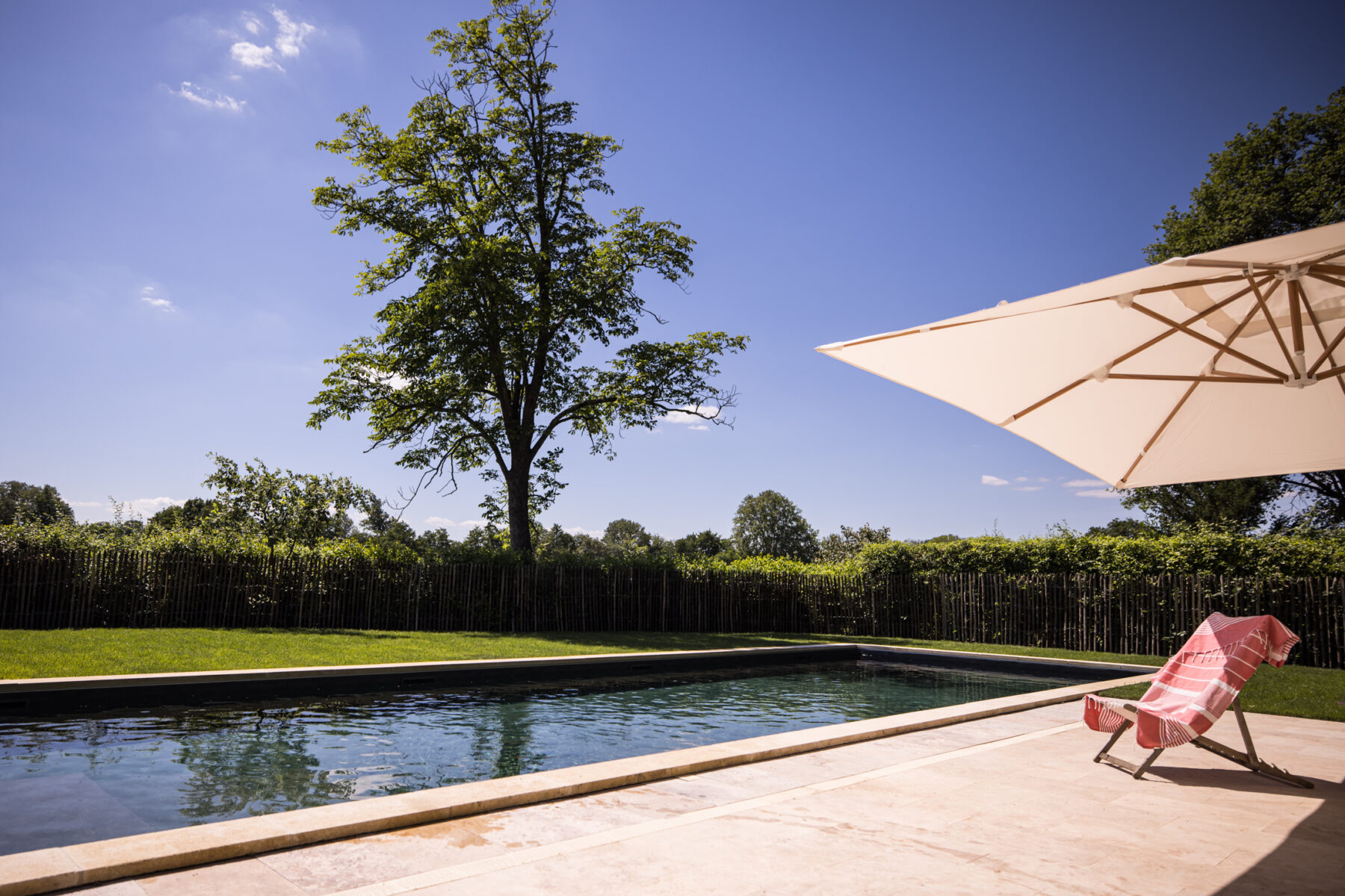 Des champs à perte de vue, des haies naturelles, c’est au milieu de ce camaïeu de verts que se pose sereinement ce bassin aux dimensions extravagantes. Grâce à son podium immergé, de longues heures de baignade sont au programme. Un escalier majestueux complète le tableau. Un revêtement d’étanchéité effet 3D pour une eau bleu profond, une couverture automatique pour assurer la sécurité et la propreté du bassin, une gestion de la filtration et du traitement intelligents entièrement automatisés.
